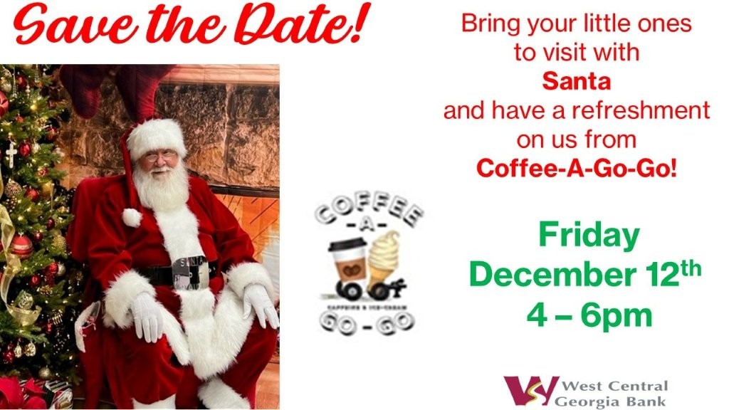 Bring your little ones to visit with Santa and enjoy a refreshment from Coffee-A-Go-GO on us!